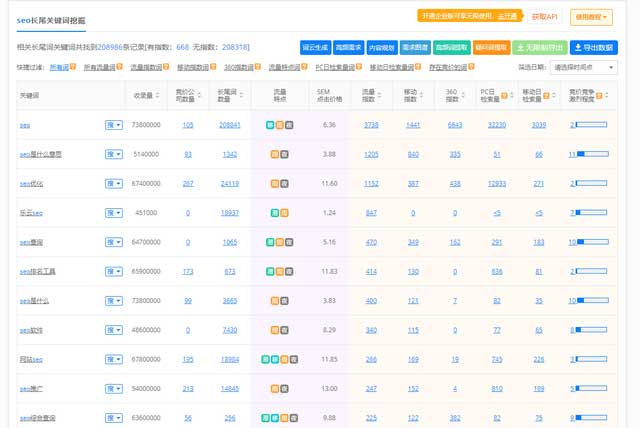 我们可以通过5118长尾词工具查找出海量长尾词,我们的首要条件就是做一些有指数的词,同时通过排名查询工具查找出我们有排名的词做站内的时候加固这些有排名的词。